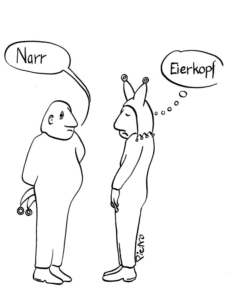 Mir ging es mit der Karikatur um die Frage, wie wir miteinander umgehen. Selbstverständlich wissen wir genau, welche Fehler der andere macht. Mit unseren eigenen Mankos und Problemen gehen wir allerdings relativ grosszügig um. Und natürlich werfen wir anderen vor, woran wir selber leiden und scheitern.